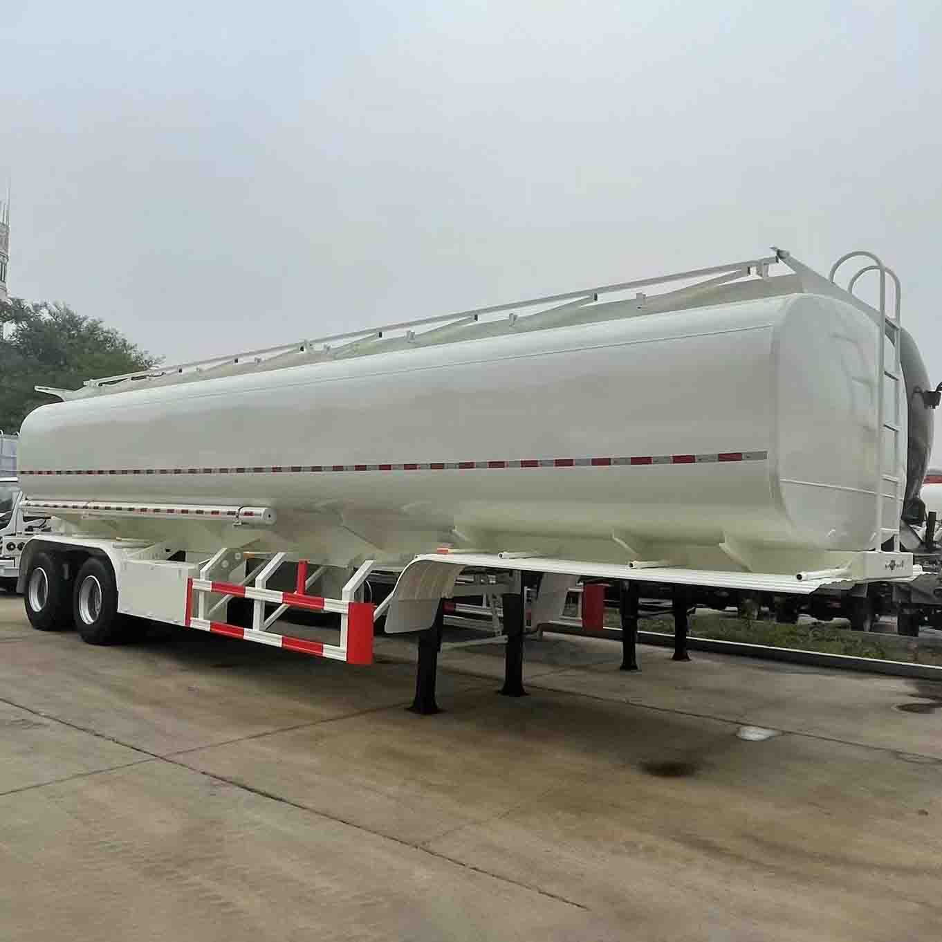 Pol-prikolica tankerja z bogie suspenzijo je telo izdelano iz visoko trdne zlitine z natančnim varjenjem in protikorozijsko obdelavo, da se zagotovi trajnost in korozijsko odpornost za dolgotrajno uporabo. Rezervoar z veliko zmogljivostjo z gladko notranjo steno in brez mrtvega prostora, enostaven za čiščenje in preprečevanje tekočih ostankov in onesnaženja. Edinstvena zasnova vzmetenja z enim točkam za doseganje stabilne podpore vozila v vse smeri.