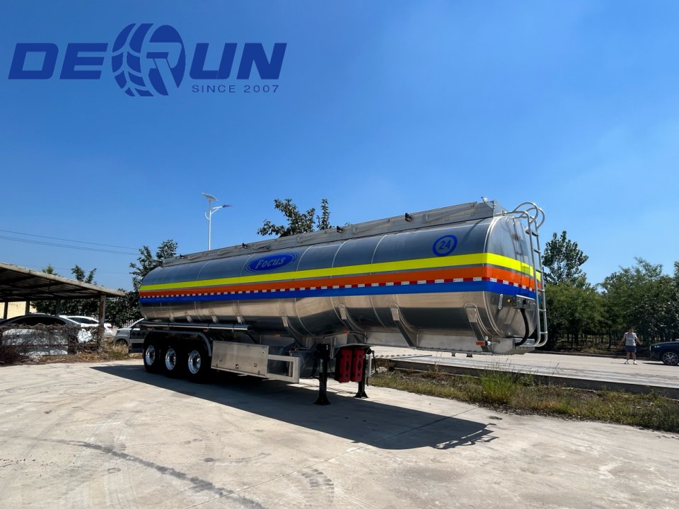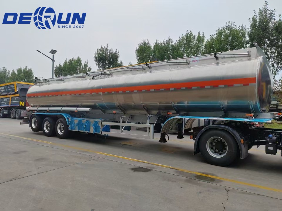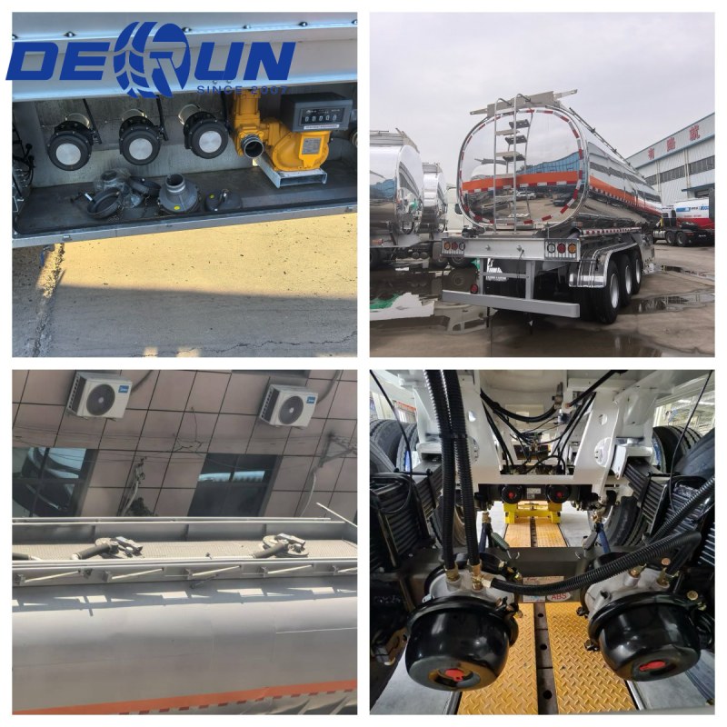 Pol rezervoarja za olje z aluminijastimi zlitinami DeRUN ima karoserijo rezervoarja iz aluminijaste zlitine, ki ponuja lahka konstrukcija in korozijsko odpornost. Notranje plošče in predelki proti Slosh učinkovito zavirajo gibanje tekočine, kar povečuje stabilnost med prevozom. Vrh je opremljen s pokrovom odprtine in vmesnikom za obnavljanje hlapov, na dnu pa ima pnevmatski zavojni zavorni ventil, vse v skladu z argentinskimi predpisi o nalaganju in razkladanju. Beli odsevni premaz zmanjšuje dvig temperature s sončne svetlobe, kar zmanjšuje izgube izhlapevanja goriva. Rep rezervoarja vključuje rezerviran vmesnik za senzorje ravni tekočine, kar omogoča prihodnjo namestitev inteligentnih sistemov za spremljanje s strani kupcev.