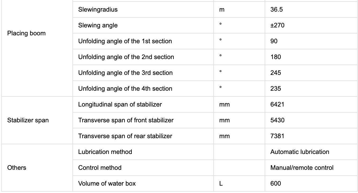 Več naprednih tehnologij: Sany's Boom Pump Truck združuje različne napredne tehnologije, kot so tehnologija pozicioniranja z enim gumbom, tehnologija za zmanjšanje vibracij inteligentnih boom, tehnologija varčevanja z energijo in rotacijska tehnologija za nadzor. Inteligentna tehnologija za zmanjšanje vibracij v boom, integrirana s tehnologijo Putzmeister, učinkovito zmanjšuje vibracijo obarvanja med črpanjem, pri čemer se amplituda zmanjša za 50%; Tehnologija varčevanja z energijo, integrirana s tehnologijo Putzmeister, doseže 29 usmerjenih sprememb na minuto (pri sistemskem tlaku 12 MPa), izboljša učinkovitost črpanja za 25% in zmanjša porabo goriva za 10%; Tehnologija rotacijskega krmiljenja za rotacijo uporablja tehnologijo rotacijskega zaviranja, kar zmanjšuje amplitudo rotacijske gugalnice za 60%.